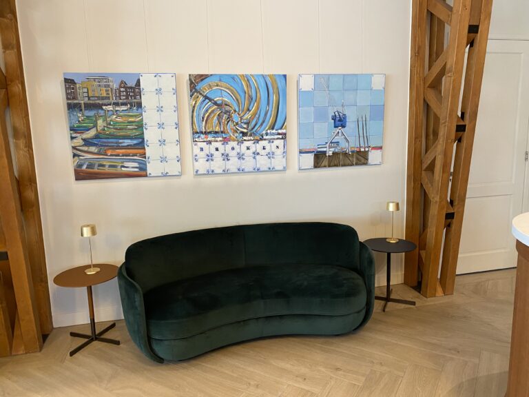 De geschiedenis van Harlingen en de productie van tegels vanaf 1598 heeft voor mij een bijzondere betekenis. De Harlinger Aardewerk- en Tegelfabriek maakt nog steeds tegels op traditionele wijze, wat ik prachtig vind. In het Hannemahuis is een kamer met oude tegels die verhalen vertellen uit verschillende periodes, evenals gebroken aardewerk, wat weer de link legt naar mijn werk “The Broken Jug”.